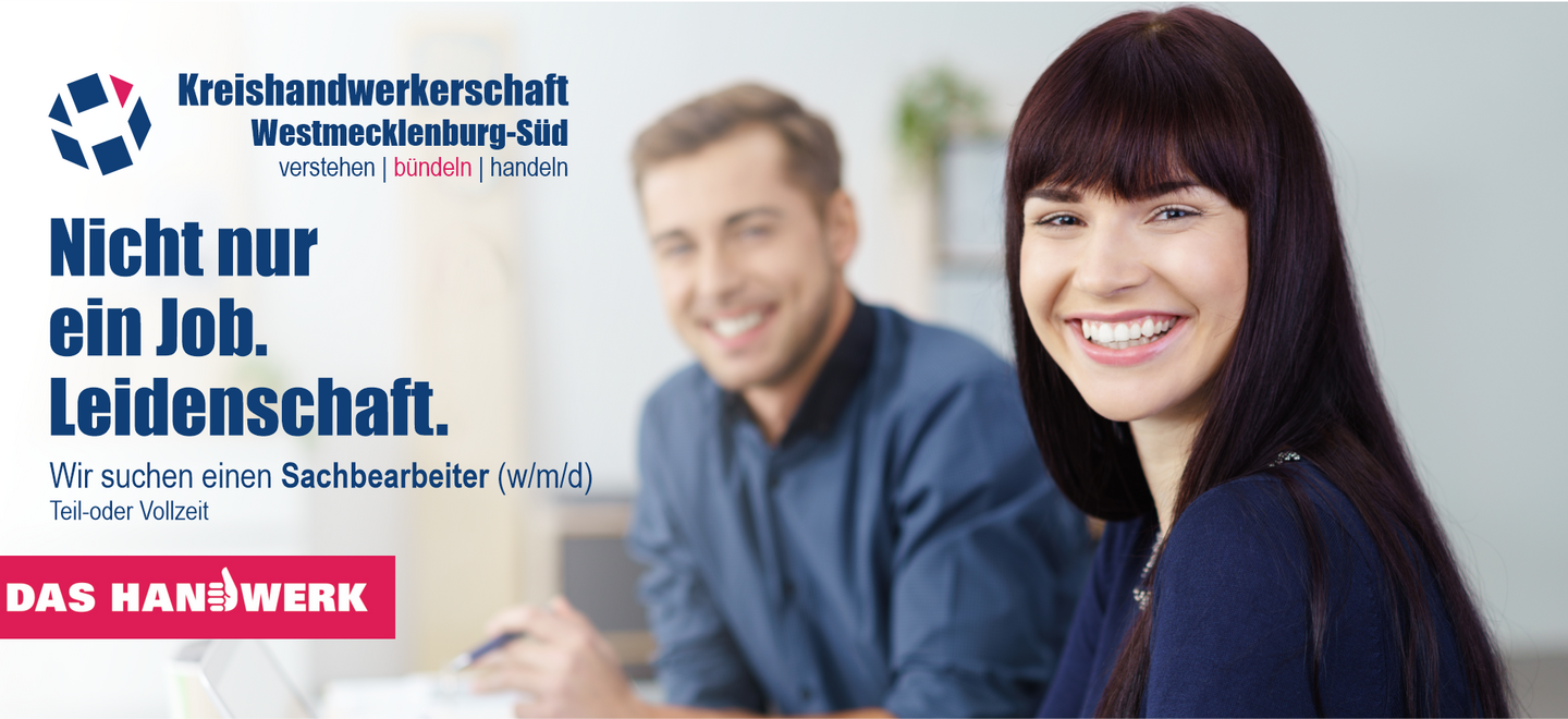 Die Anstellung erfolgt in Teil- oder Vollzeit (nach Absprache) zunächst befristet. Die Aufgabenstellung erfordert eine flexible Arbeitszeitgestaltung. Arbeitsorte sind die Geschäftsstellen der Kreishandwerkerschaft in Ludwigslust und Parchim.